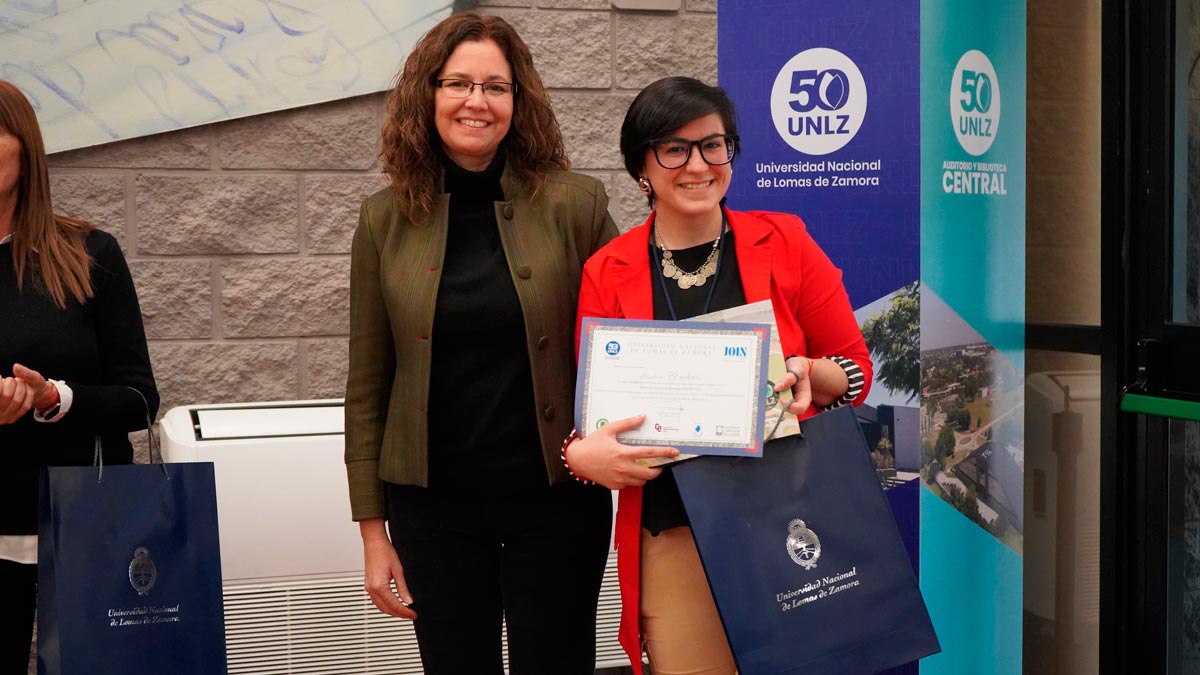 Durante la sesión de pósters científicos, sus autores pudieron exponer a los presentes los resultados de sus trabajos. Luego de la votación de los asistentes, se entregaron las distinciones a los trabajos más votados para: Analía Harbar, de la FCA; Daniela Gorrochategui, de la FCE; Candela Gelabert, de la FCS; David Alegre, de la FD, y Milagros Tevez Sauco, de FI.