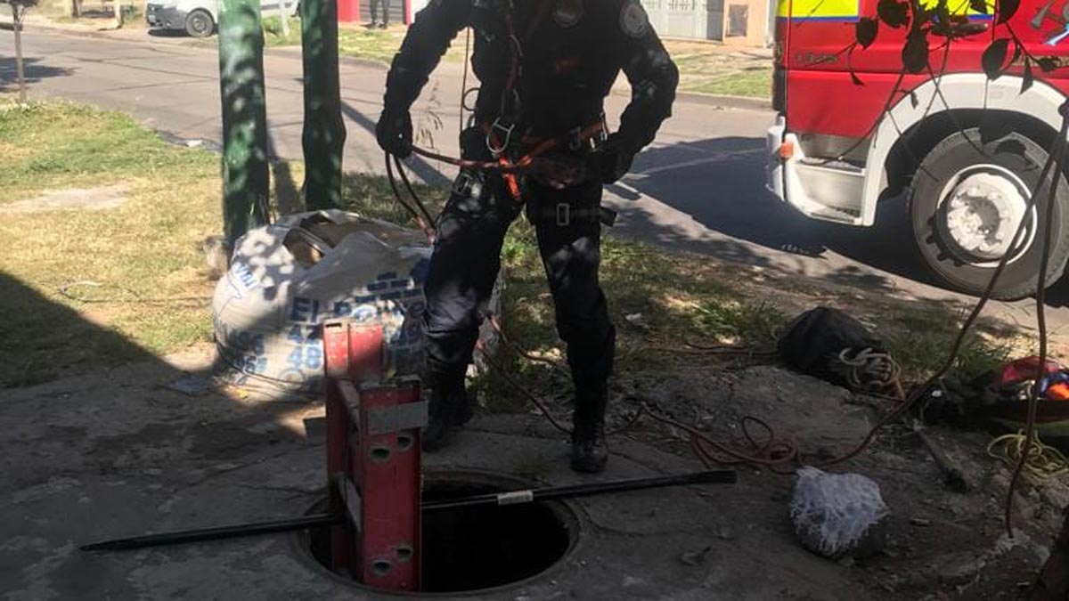 El perro, de tamaño mediano y pelaje bicolor (blanco y negro), estaba atrapado en una alcantarilla y alertó a los vecinos, que dieron aviso a los Bomberos. Una dotación se acercó al cruce de las calles Gaboto y Río Negro de San José para auxiliarlo.