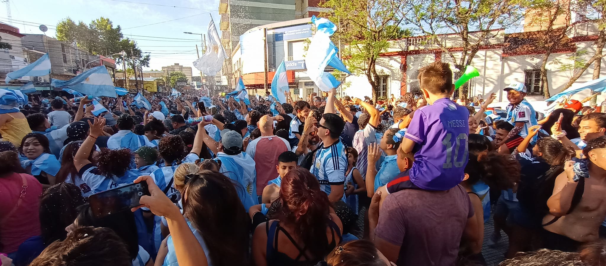 Decena de vecinos de Esteban Echeverría celebran y disfrutan en las calles el pase de la Selección argentina a la final de la Copa del Mundo, que se disputará el próximo domingo.