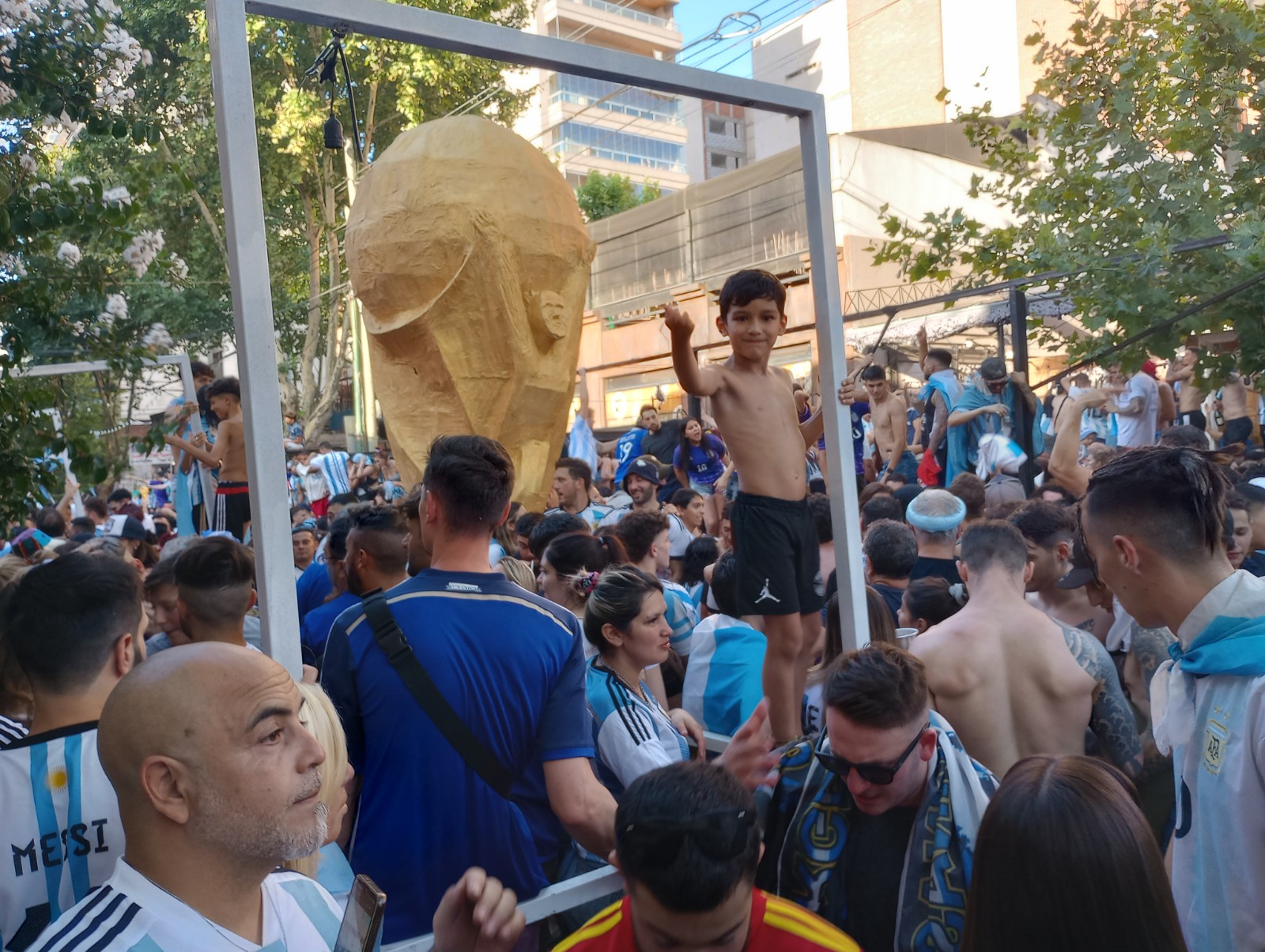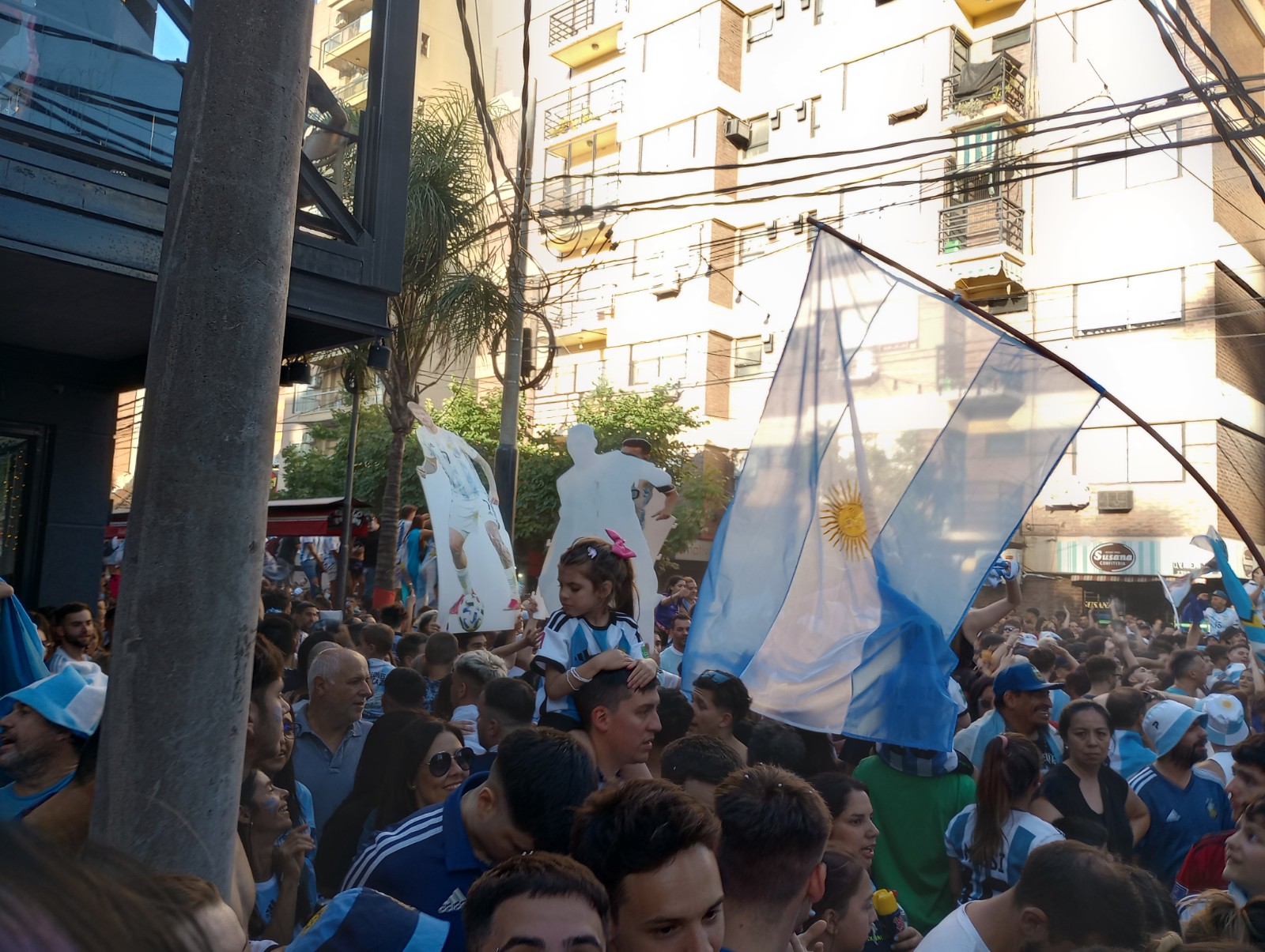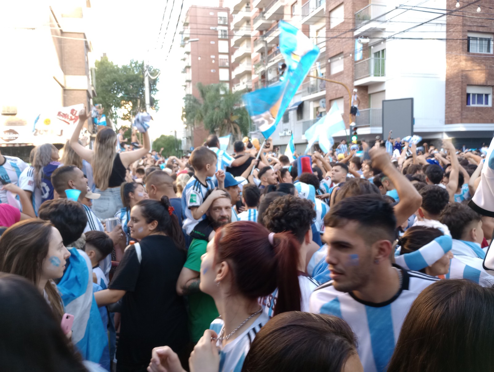 Ápenas terminada la tanda de penales que soldó la tercera estrella del fútbol argentino, cientos de personas comenzaron a llegar y completaron un damero de fanatismo y fiesta desde las calles ministro brina hasta Yrigoent y desde Piñeiro hasta Moreno.