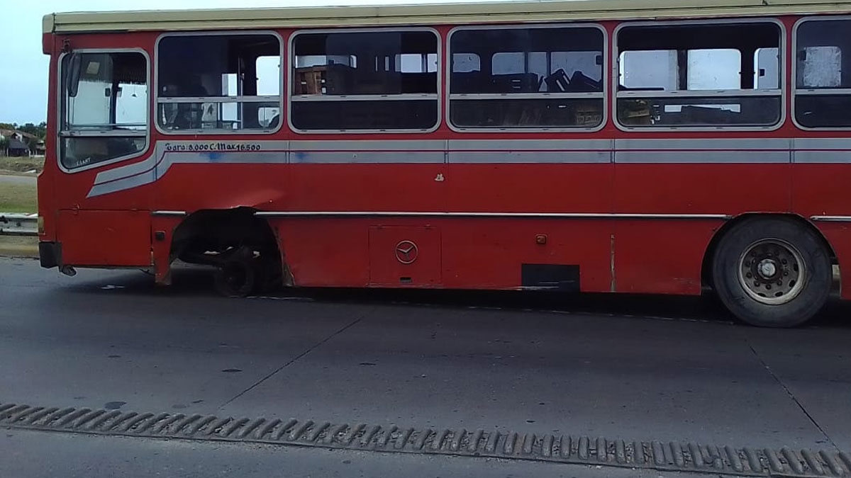 Un micro que circulaba por la avenida Lacaze en Claypole, partido de Almirante Brown, perdió una de las ruedas y terminó impactando contra un auto. El rodado sufrió serios daños por la fuerza del golpe.