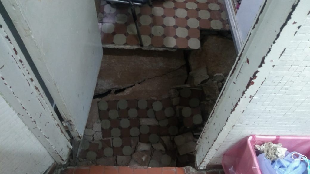 Por su parte, en marzo de 2021 desde la seccional de ATE de Almirante Brown-Presidente Perón denunciaron que se derrumbó el piso de la sala de clínica médica del hospital y adviertieron que “existe riesgo de derrumbe en el pasillo”: “El azar hizo que no hubiera que lamentar heridos. El estado de deterioro del viejo edificio del hospital es conocido por los funcionarios y ha sido denunciado en forma reiterada por les trabajadores del hospital que reclamamos hace años un edificio nuevo”, reclamaron en ese entonces a través de un comunicado difundido por redes sociales.
