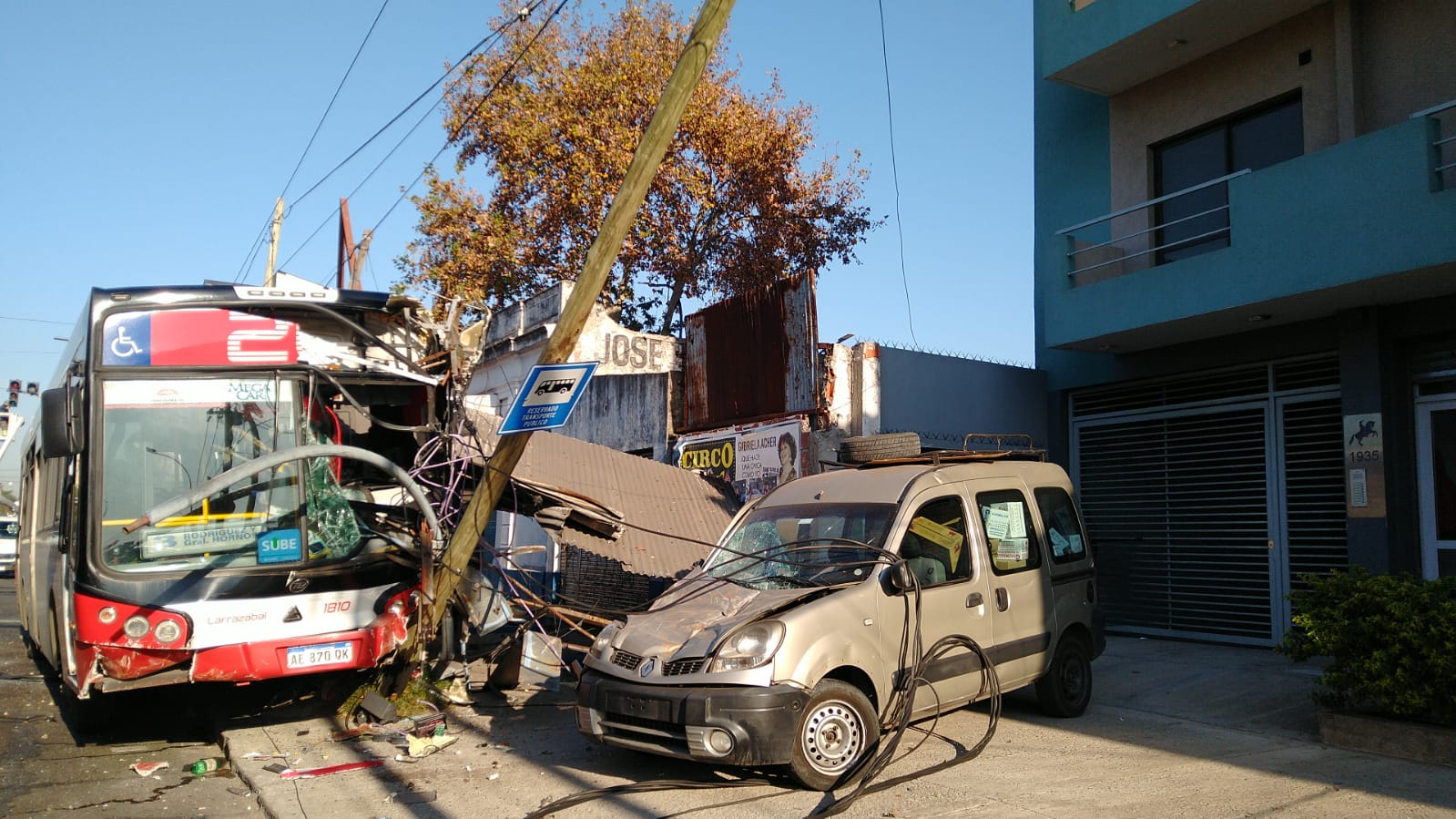 El suceso, entre una unidad de la línea 20 y una camioneta particular, tuvo lugar alrededor de las 9.30 en la avenida San Martín 1930 y Coronel D’elia. Producto del impacto, el transporte de pasajeros terminó colisionando contra un puesto de diarios.