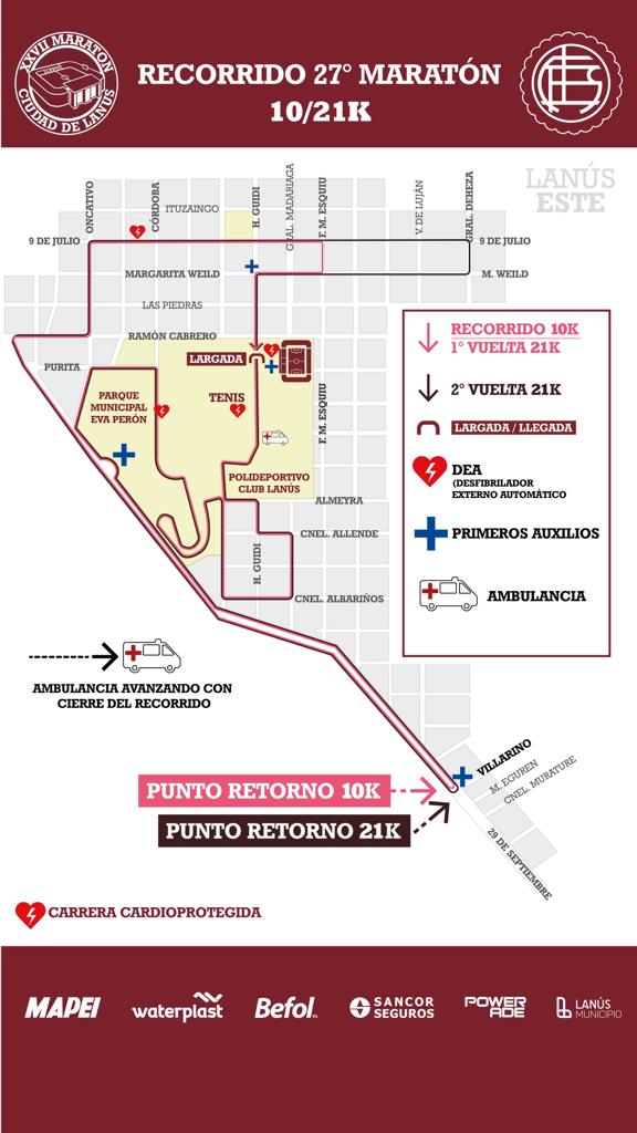 👉 Te informamos que el día domingo 9 de julio, de 7:00 a 13:00 hs, debido a la realización de la Maratón 27° del Club Lanús, habrá cortes de calles en la zona intervenida que te mostramos a continuación. pic.twitter.com/RFvYqIzKsw