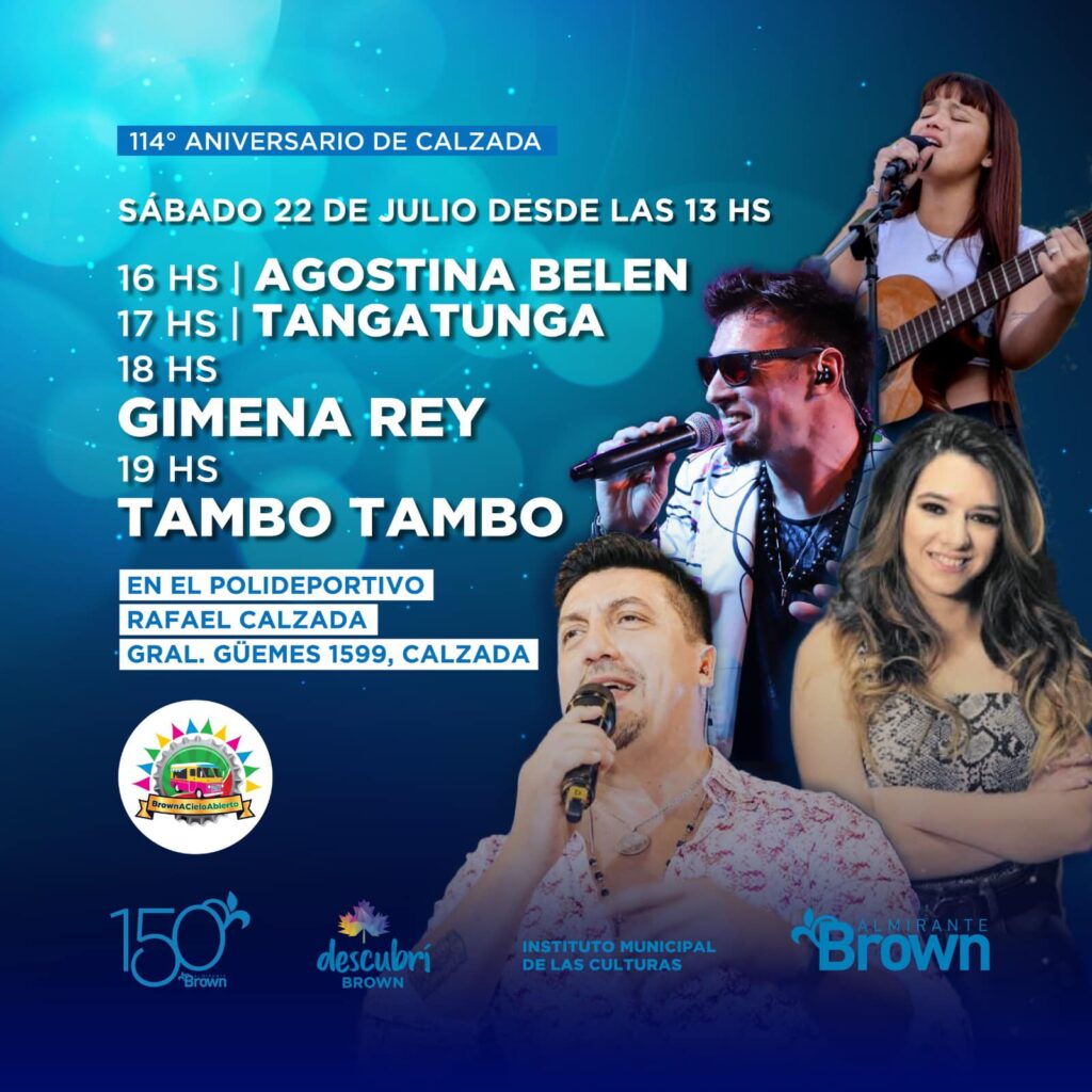 La localidad de Rafael Calzada, en el partido de Almirante Brown, cumplió 114 años años y lo celebra un festival familiar que incluye propuestas gastronómicas, actividades recreativas y feria de emprendedores, además de shows en vivo y cerrará con la presentación de Tambó Tambó.