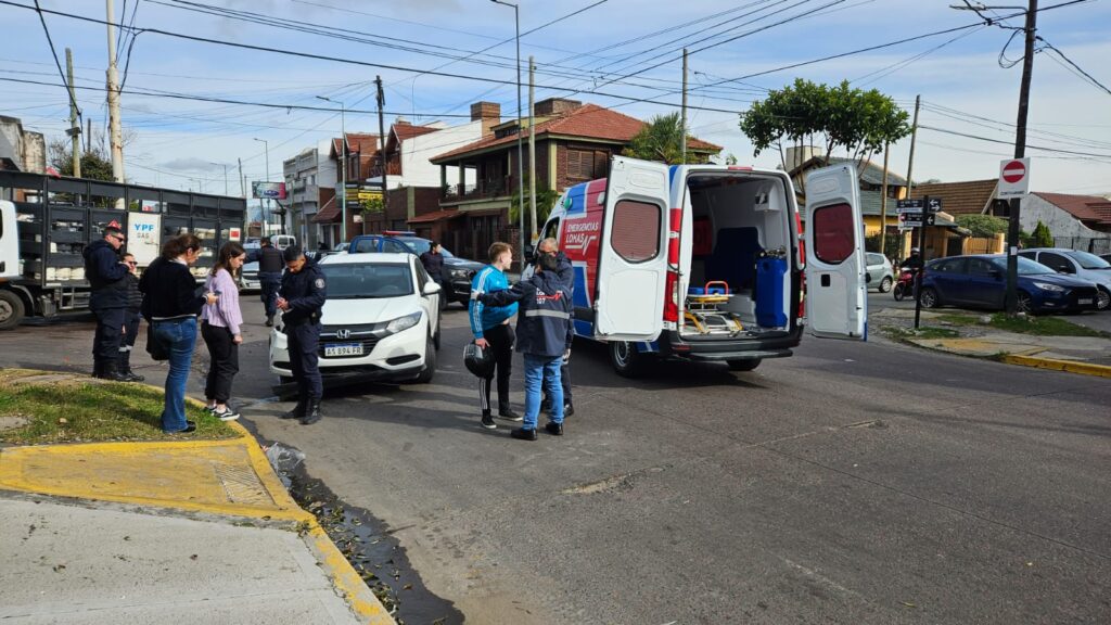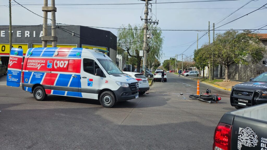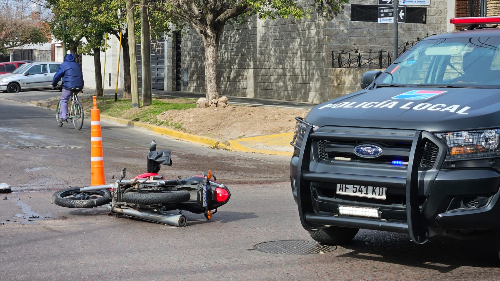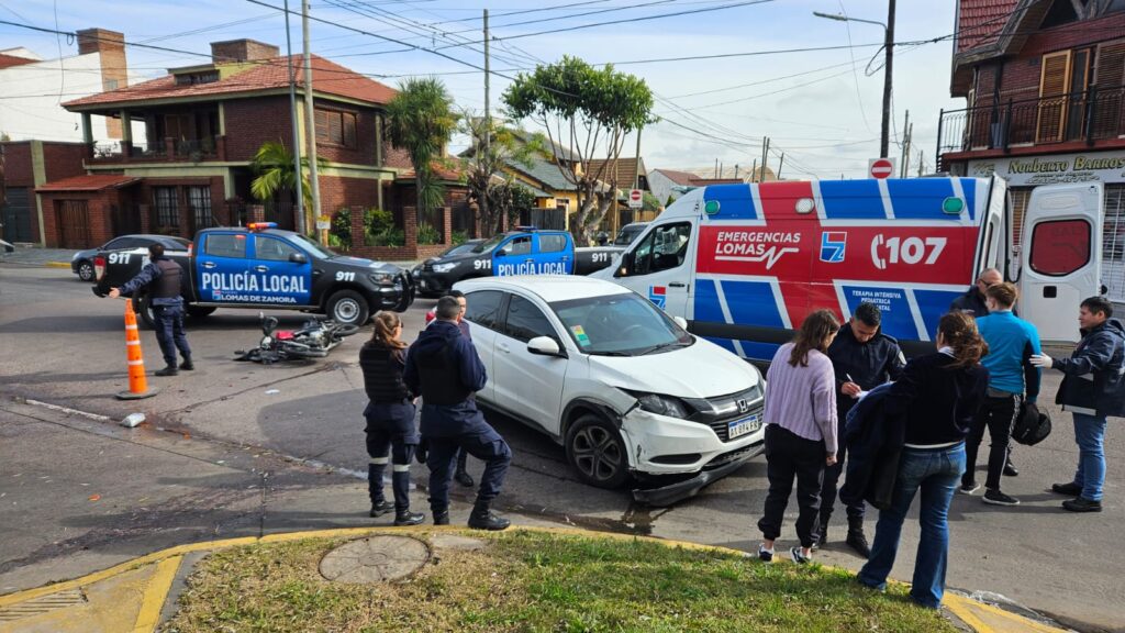 Un terrible choque se registró este miércoles entre un auto y una moto en la localidad de Lomas de Zamora. Producto del impacto, el motociclista resultó herido y debió ser asistido.