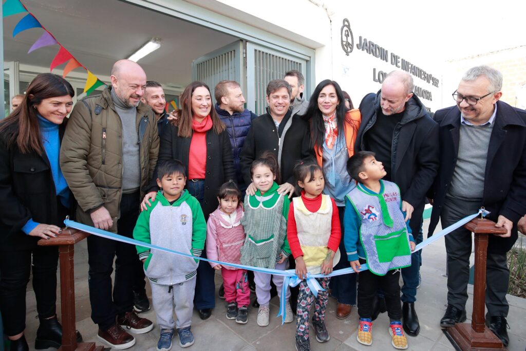 El gobernador de la provincia de Buenos Aires, Axel Kicillof, inauguró hoy el nuevo edificio del Jardín de Infantes N° 952 en la localidad de Lomas de Zamora, donde pidió “que nunca más vuelvan el odio y la violencia política a la Argentina”.