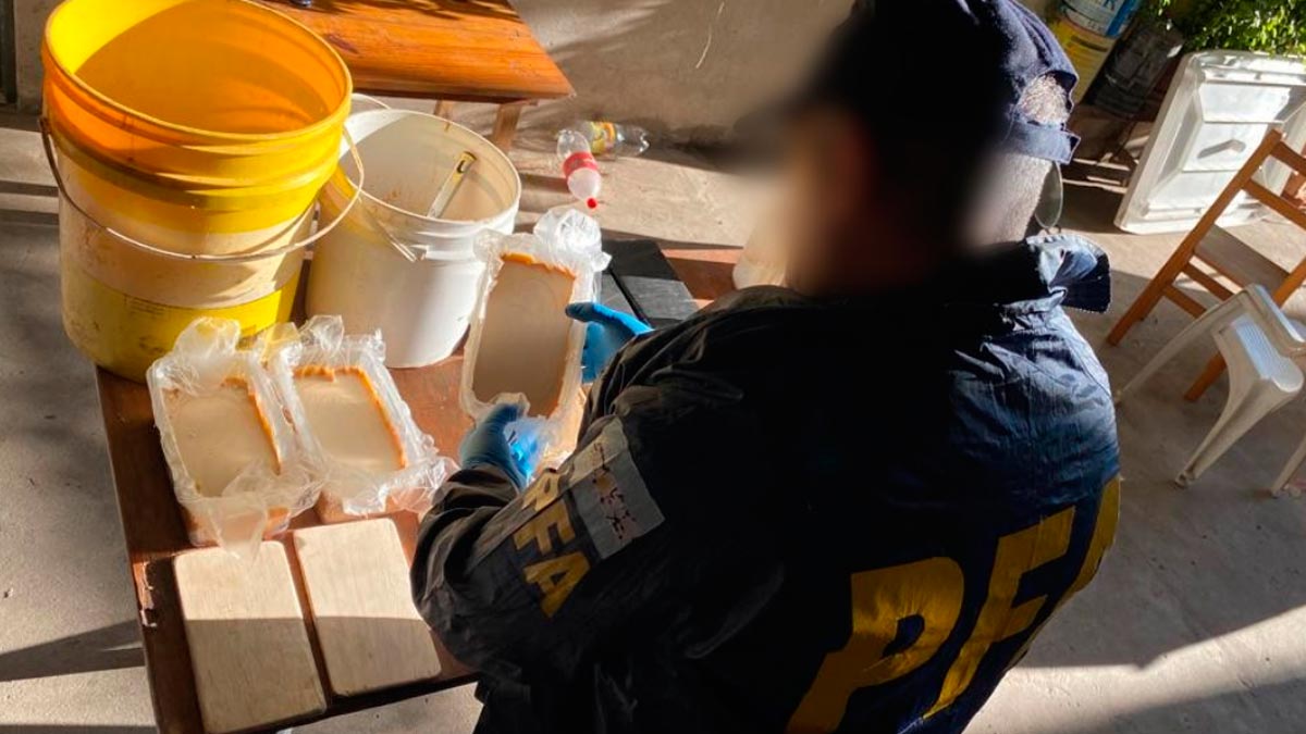 “De las tareas realizadas por los investigadores en zona de Ingeniero Budge, una de ellas fue la más impactante ya que solo la cercanía a uno de los domicilios denotaba un fuerte olor a diluyente que emanaba de ese depósito, por lo que podría tratarse de un lugar para la elaboración de la droga”, explicaron desde la Policía Federal. Este predio fue allanado, junto a otros 18 objetivos.