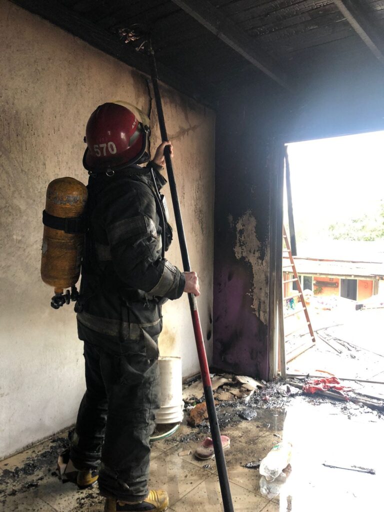Tras el llamado alarmante de los vecinos el domingo por la noche, los Bomberos Voluntarios de Almirante Brown, se acercaron a una vivienda para realizar trabajos de extinción en las llamas que se habían desatado. La vivienda sufrió daños en el techo y paredes.
