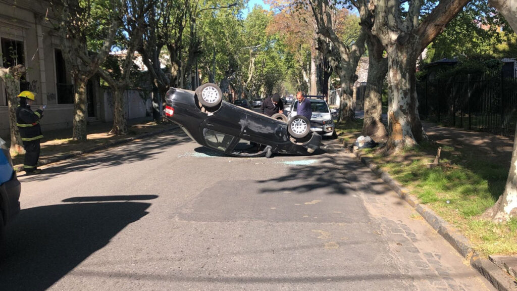 El primer siniestro reportado por los Bomberos Voluntarios de Almirante Brown se registró en la mañana del domingo, en el cruce de las calles Mitre y Erezcano de la localidad de Adrogué. El conductor de un Fiat Siena habría perdido el control y terminó volcando.