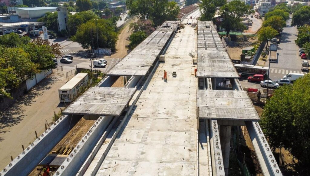 Se trabaja en simultáneo en distintos frentes de obra y el viaducto se construye siguiendo la traza ferroviaria levantada hasta las inmediaciones del cruce con Zavaleta.