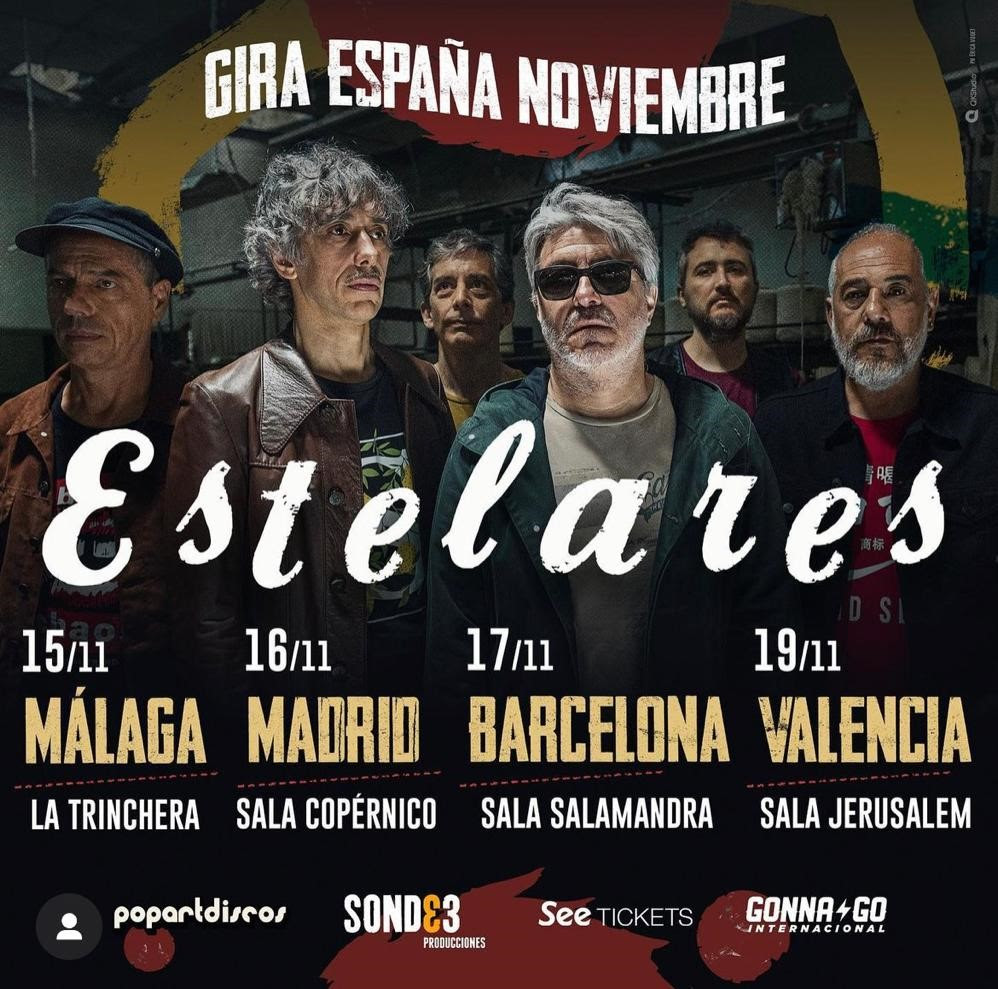 Estelares regresa al “viejo continente” con sus evocadoras canciones, que ahora cruzan el Atlántico para ofrecer una serie de inolvidables conciertos en España. Las ciudades afortunadas en recibirlos serán Málaga, Madrid, Barcelona y Valencia. Cuatro noches perfectas donde podrán disfrutar de todos sus clásicos que ya son marca registrada.