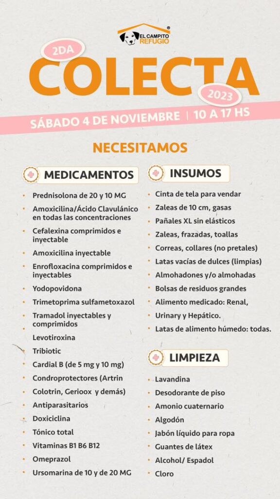 La colecta comenzó a las 10 y se extiende hasta las 17, en seis puntos. “Necesitamos varios insumos, productos de limpieza y medicamentos”, señalaron.