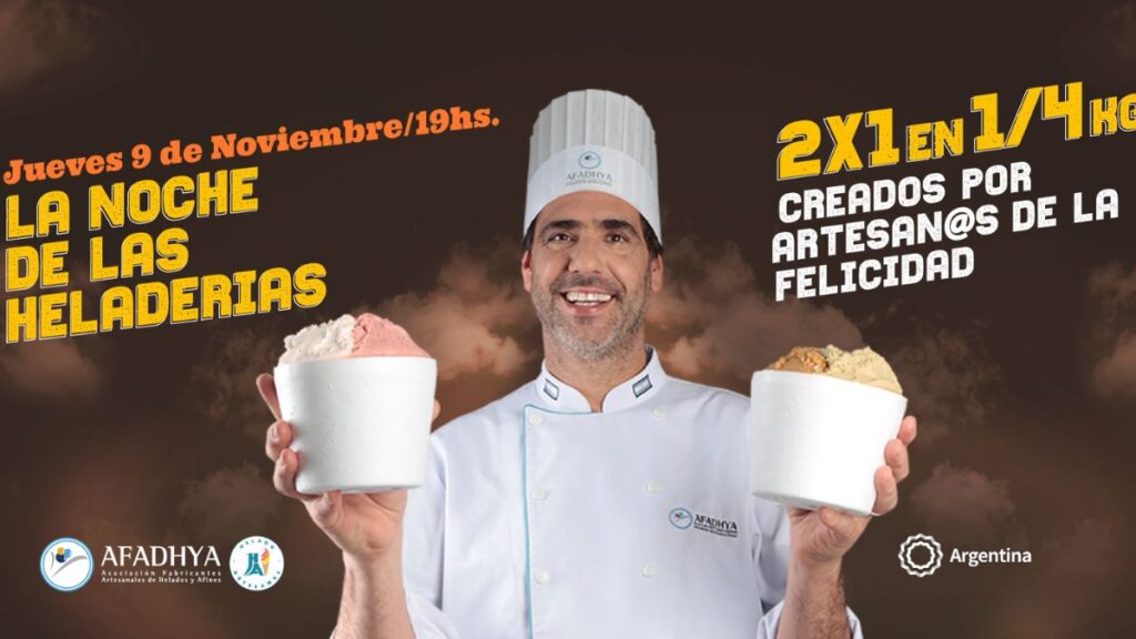 La séptima edición de La Noche de las Heladerías comienza hoy desde las 19 y durará hasta el cierre de cada una. El evento es llevado a cabo por por la Asociación de Fabricantes Artesanales de Helados y Afines (AFADHYA), en el marco de la Semana del Auténtico Helado Artesanal que va desde el 6 hasta el 12 de noviembre.