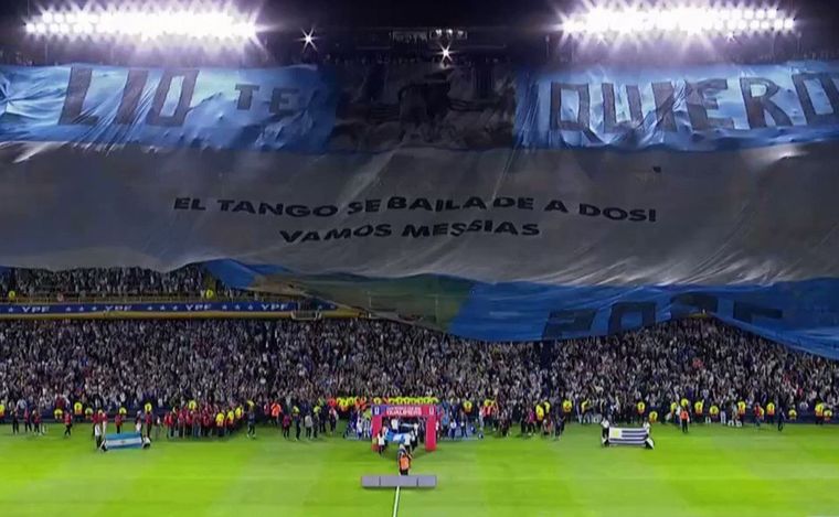 Maradona también dijo presente en el partido de la Selección Argentina y Uruguay en La Bombonera, cuando se desplegó un telón en donde estaban su figura junto a Messi y la frase “el tango se baila de a dos” con imágenes de los dos mejores jugadores que nacieron en nuestro país. Ambos campeones del mundo, zurdos, ganadores, capitanes y líderes.