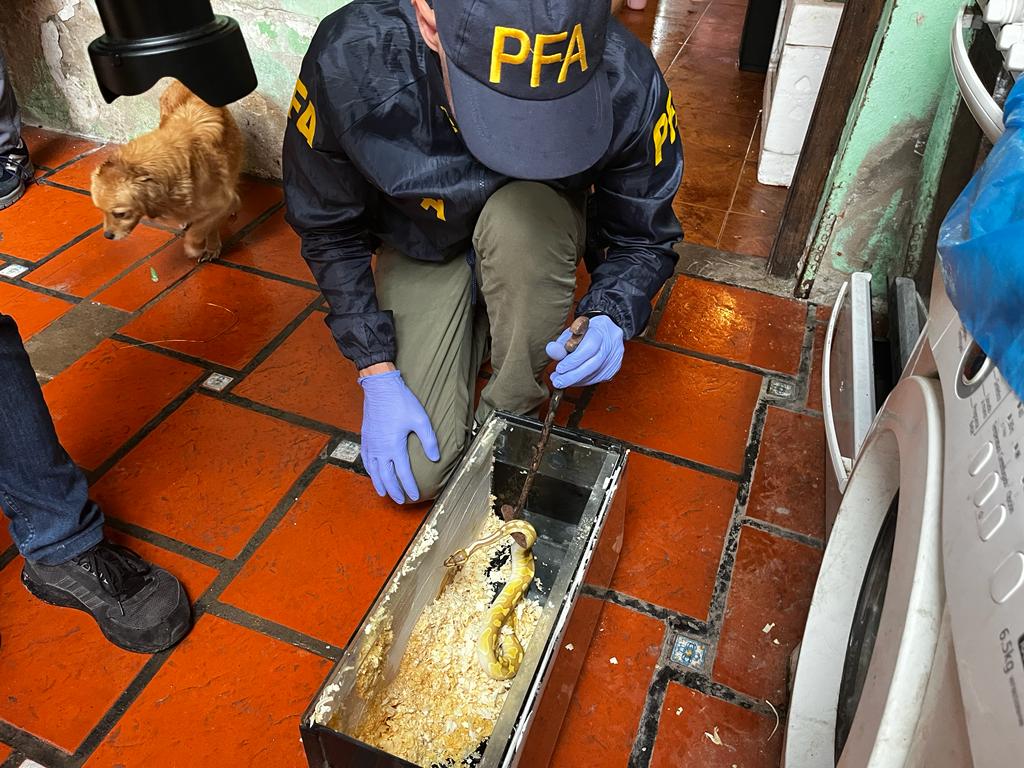 La Policía Federal Argentina desarticuló una red de Tráfico Internacional e ilegal de Fauna Silvestre luego de 11 allanamientos en el conurbano bonaerense, uno de ellos fue en Lanús.