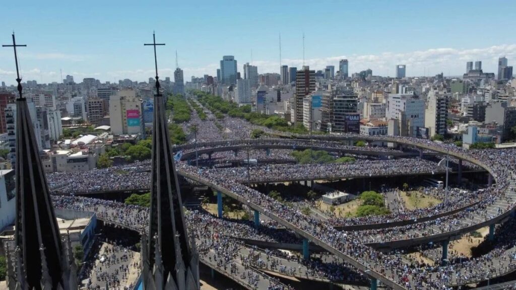 Se estima que más de cinco millones de personas se movilizaron entre la ciudad de Buenos Aires, con el Obelisco como epicentro y los alrededores del predio de la Asociación del Fútbol Argentino (AFA) en la localidad bonaerense de Ezeiza.