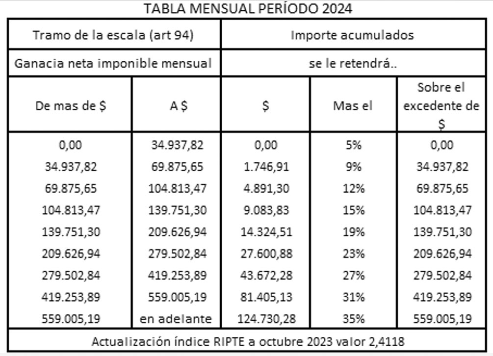 Para poder mensurar el quantum del impuesto a ingresar, resta incorporar cómo quedan constituidos los tramos de ingresos y escalas a ser aplicadas para el período 2024: