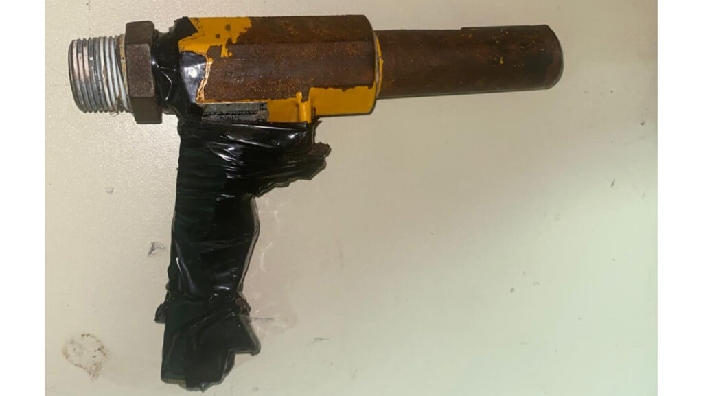 Al ser incautado, se comprobó que se trataba de una réplica de arma de fuego casera, envuelta en cinta adhesiva negra, que podría haber sido usada para intimidar o cometer algún delito.