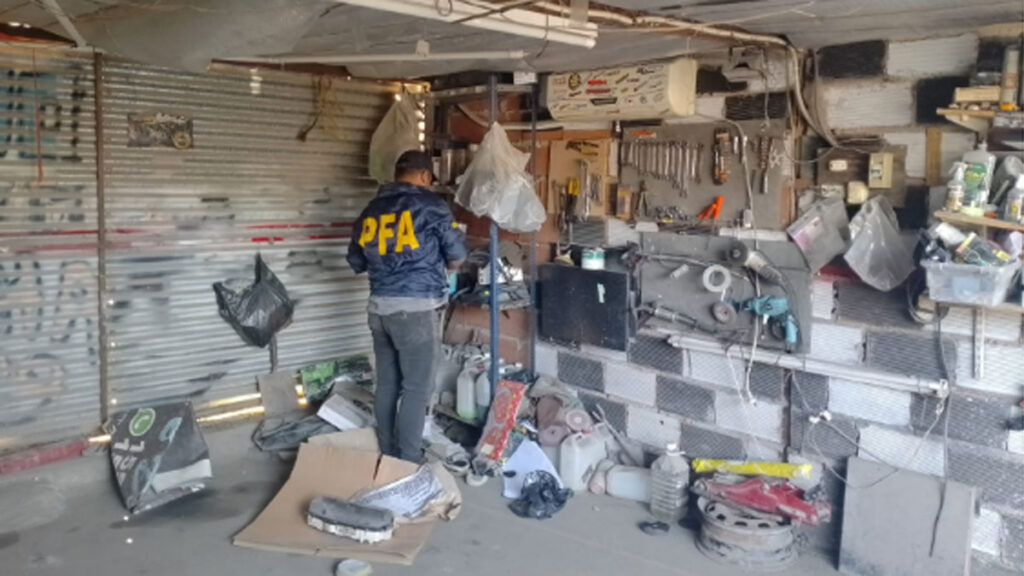 Agentes de la División Delitos contra el Automotor de la Policía Federal desarticularon un taller clandestino dedicado al desguace de vehículos robados en la vía pública, en el partido de Almirante Brown.