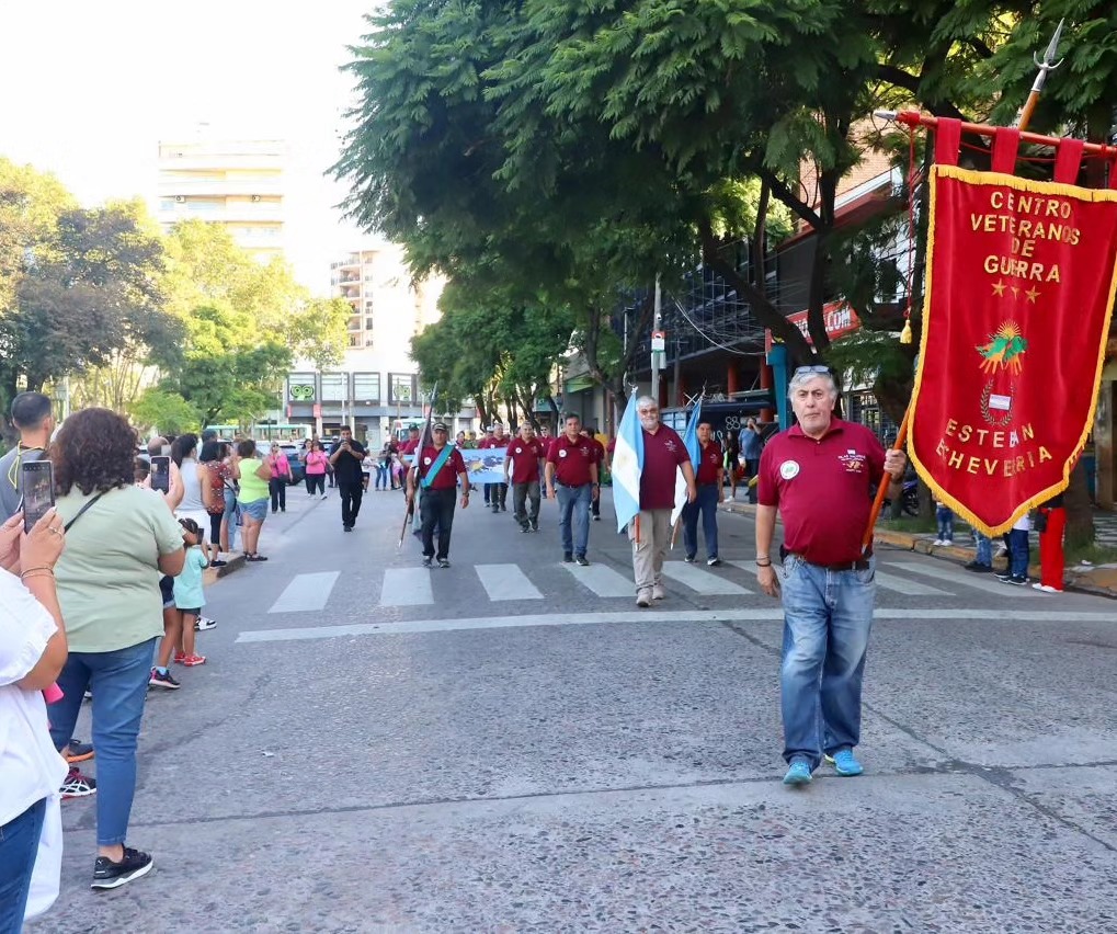 Comenzó una nueva edición de la Semana de Malvinas y en la tarde de ayer los integrantes del Centro de Veteranos de Guerra de Esteban Echeverría, entidades de bien público y ballets folclóricos realizaron el tradicional desfile desde el Palacio Municipal hasta la plaza de Los Fundadores.