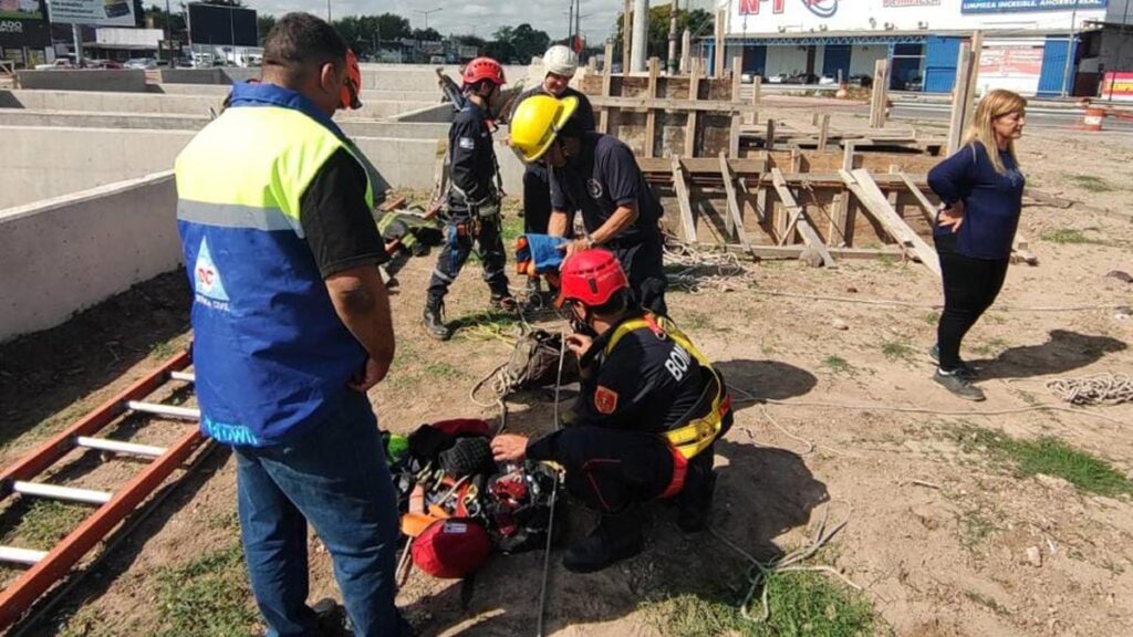 Los Bomberos Voluntarios de Almirante (BVAB) rescataron un perro que había caído en una obra pública en la localidad de Burzaco.