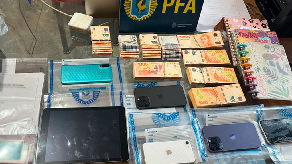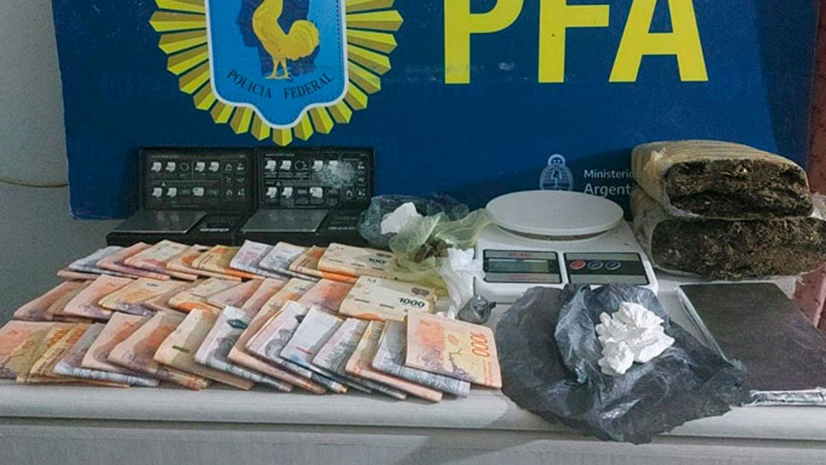 Como resultado del operativo, se incautaron más de un kilo y medio de marihuana, dosis de cocaína, 1.693.870 pesos, 15 teléfonos celulares, tres balanzas de precisión, una tablet, un auto particular y demás documentación.