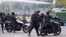 Un impresionante operativo de seguridad impide la circulación de las columnas en las calles de las inmediaciones de la Plaza de los Dos Congresos. Se implementa el protocolo antipiquetes.