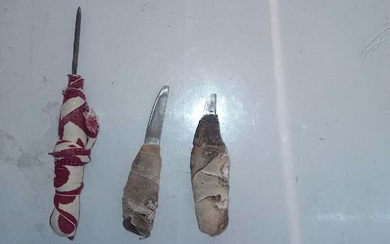 Además, en la la Colonia Penal de Ezeiza, al llevarse a cabo el procedimiento ordinario de la sección control y registros en el pabellón 4 de la Unidad 19, se hallaron otros objetos prohibidos entre las pertenencias de los internos y en la mampostería del lugar.