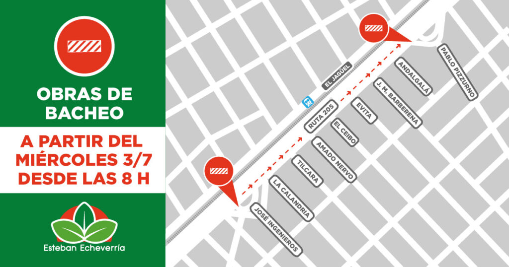 El Municipio de Esteban Echeverría informó que a partir de mañana, 3 de Julio, el carril de la Ruta Nacional 205 con sentido a Monte Grande a la altura de la estación de trenes de El Jagüel,  tendrá una reducción en la calzada.