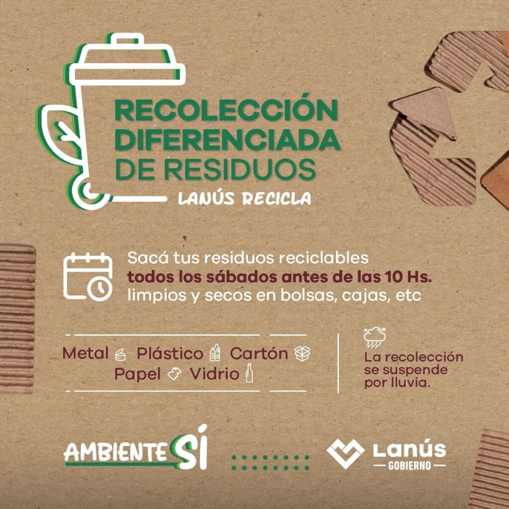 Los residuos aceptados son: metal, plástico, cartón, papel y vidrio, y la recolección se suspende por lluvia.