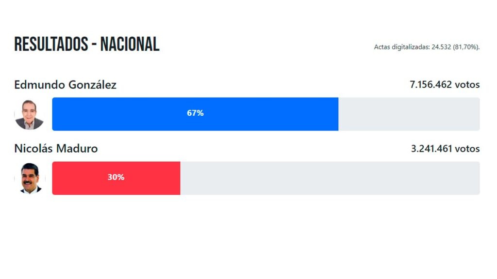 De acuerdo a la página, González es el ganador de los comicios con el 67 por ciento de los votos, frente al 30 de Maduro.