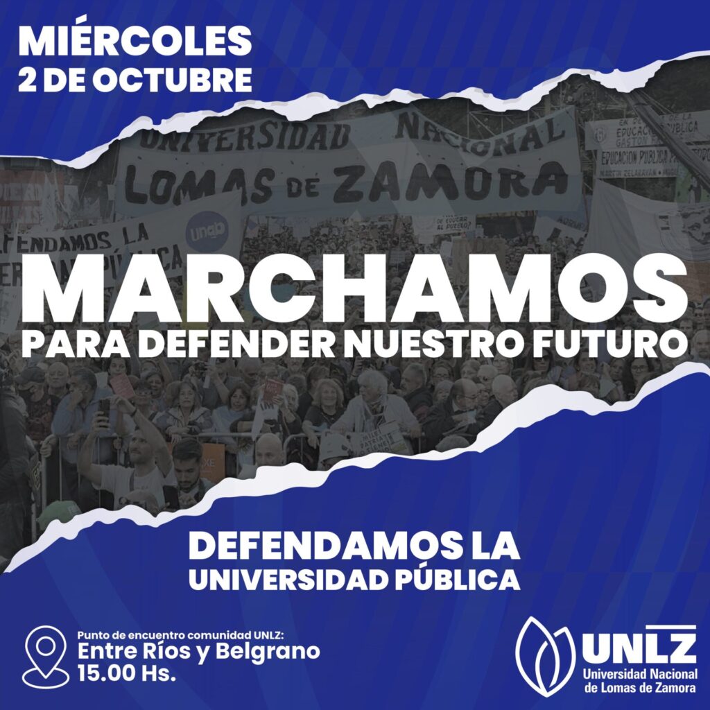 De cara a la segunda Marcha Federal Universitaria, la Universidad Nacional de Lomas de Zamora (UNLZ) convoca a la comunidad a acompañar el reclamo. “Marchamos para defender nuestro futuro”, reza el mensaje.