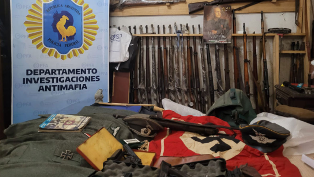 Secuestraron 43 fusiles con acuñación de águila nazi, 15 pistolas, cinco bayonetas, una ballesta, una ametralladora 9mm con acuñación nazi, dos máquinas de carga, 3.000 fulminantes, 3,5 kilogramos de pólvora, 3.000 puntas y 2.500 vainas de distintos calibres.