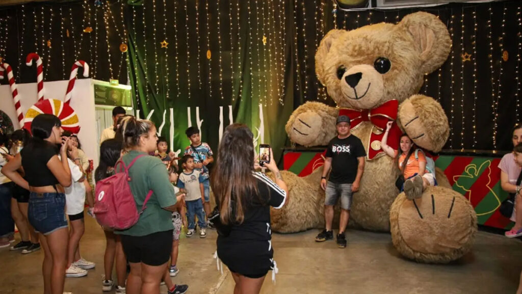 Allí, los visitantes aprovechan la decoración para sacarse fotos, por ejemplo se puede subir al trineo con el que Papá Noel reparte los juguetes, y participar de la kermesse que ofrece juegos y atracciones.