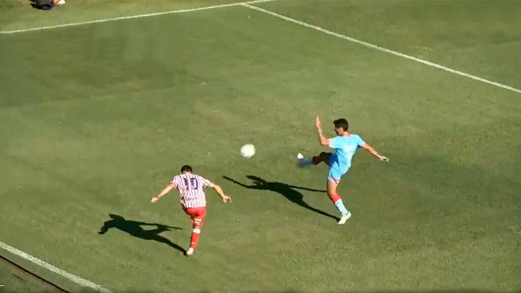 A los 12 minutos, llegó el gol de Los Andes. Gastón Gerzel avanzó por la banda izquierda y pateó al arco desde media distancia con un tiro que se fue cerrando sorpresivamente. Jerónimo Pourtau, en un intento por despejar el peligroso envío, terminó introduciendo la pelota en su propia valla, luego de impactar en su mano derecha, dando ventaja al visitante.