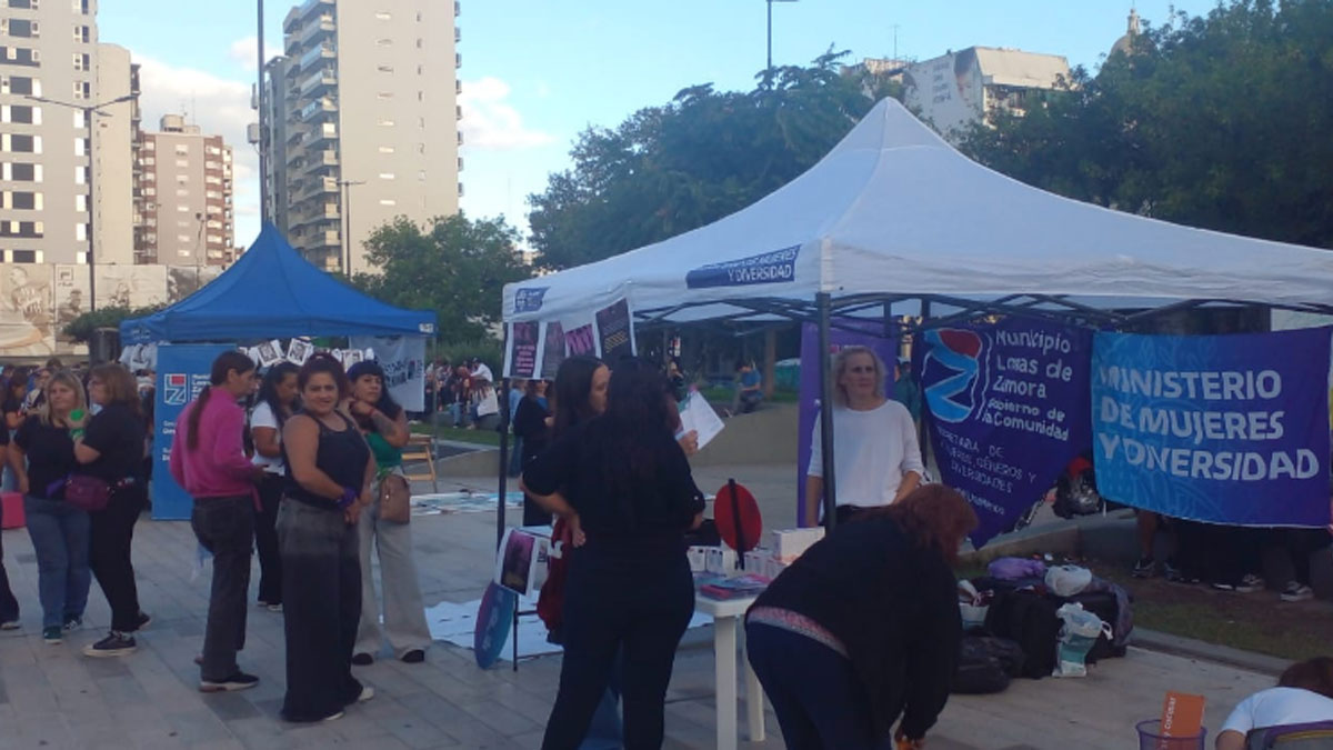 Además, el Municipio de Lomas de Zamora emplazó tres stands: uno de Salud, otro de Mujeres y Diversidad, y el tercero fue el de la Secretaría de Derechos Humanos, que propuso pintar pañuelos blancos con las consignas “Nunca Más” y Ni un paso atrás”.