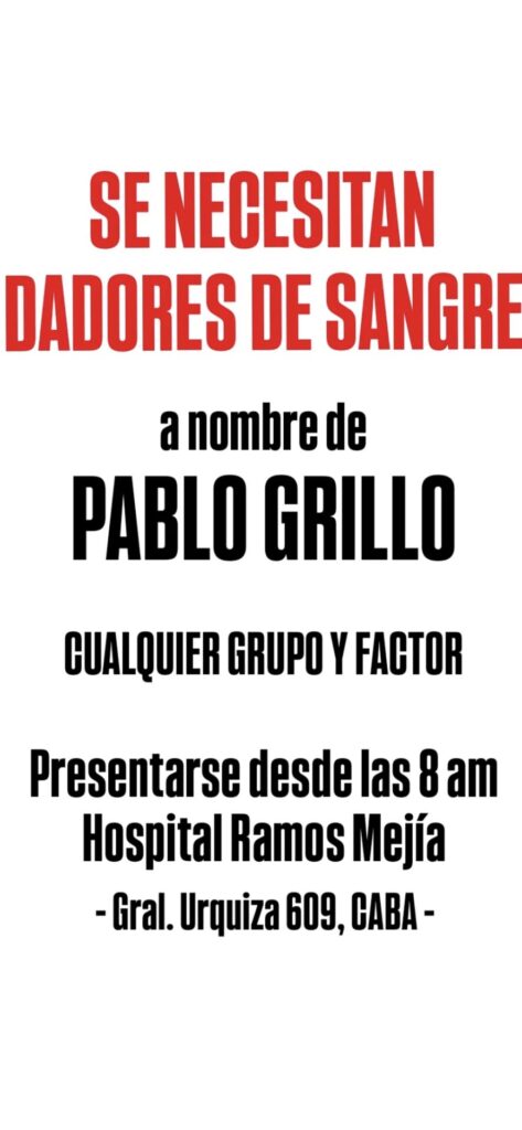 Horas más tarde, el intendente viralizó el pedido de donaciones de sangre para Pablo Grillo.