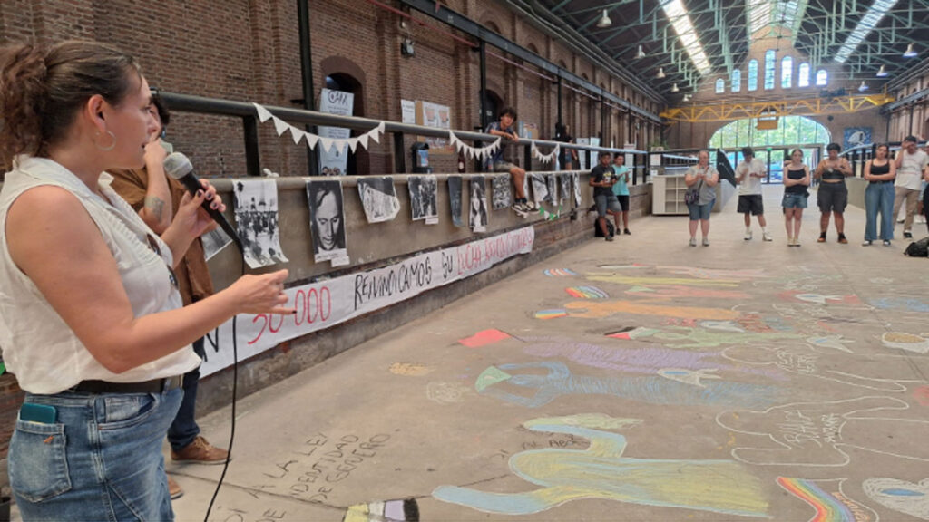 El Centro de Estudiantes de Humanidades y Artes (CEDHA) de la Universidad Nacional de Lanús (UNLa) desarrolló esta actividad en el pabellón José Hernández junto a decenas de estudiantes y contó con la presencia de Teresa Laborde Calvo, docente de esa institución e hija Adriana Calvo, ex detenida desaparecida durante la última dictadura militar.
