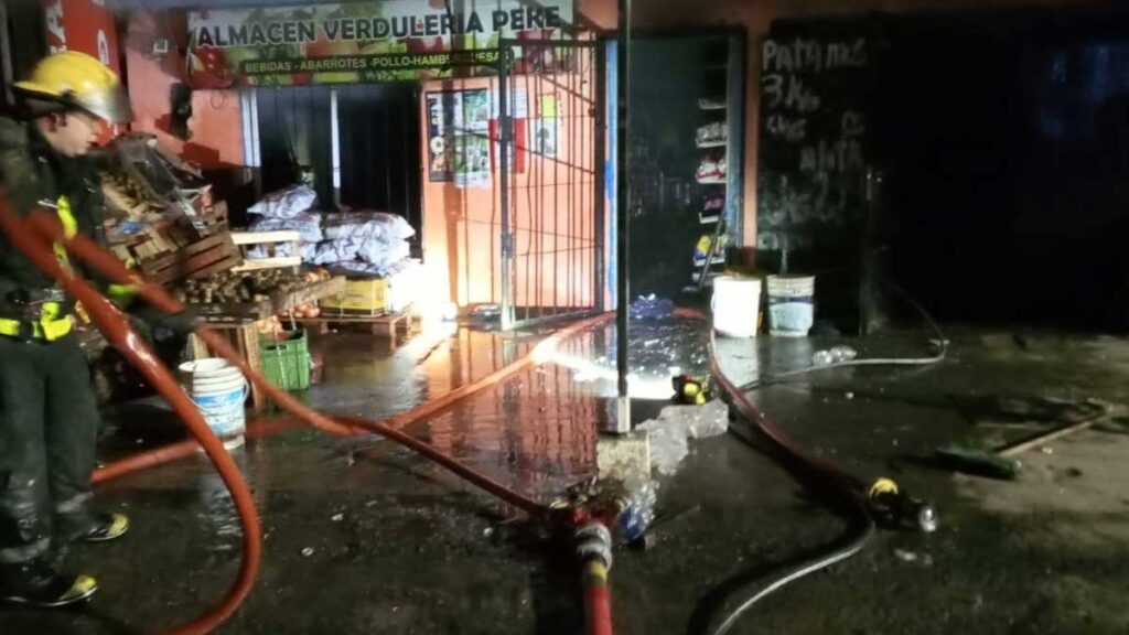 Dos dotaciones de los Bomberos Voluntarios de Esteban Echeverría acudieron para sofocar las llamas del local comercial ubicado en Daytona, entre Copacabana y Viña del Mar.