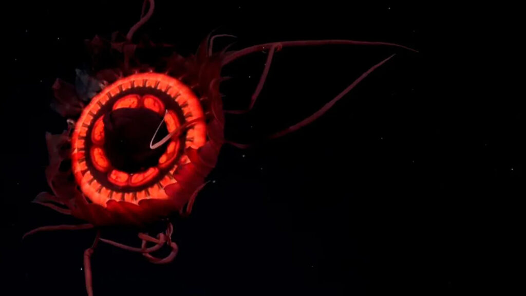 Minutos después, las cámaras del ROV captaron otro momento histórico: una medusa de color rojo intenso, con tentáculos medianos, que no figura en ningún registro previo de bases científicas internacionales. Los expertos creen que se trata de una nueva especie, lo que convierte al hallazgo en un aporte revolucionario al conocimiento de la biodiversidad marina.