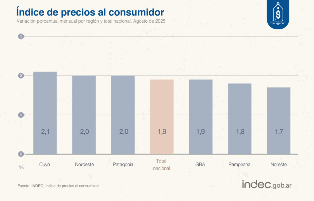 El INDEC informó que la inflación de agosto fue del 1,9%, lo que elevó el acumulado anual al 19,5% y la interanual al 33,6%. El dato llega en un escenario marcado por la volatilidad del dólar y la presión política tras las elecciones bonaerenses.