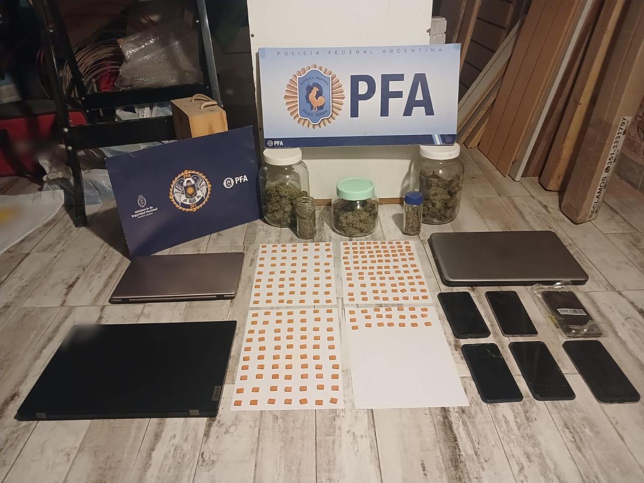 Como resultado, se logró la captura de tres hombres más integrantes de la organización y el secuestro de 280 pastillas de éxtasis, 1 kilogramo de cogollos de marihuana, 4 notebooks y 6 celulares adicionales.