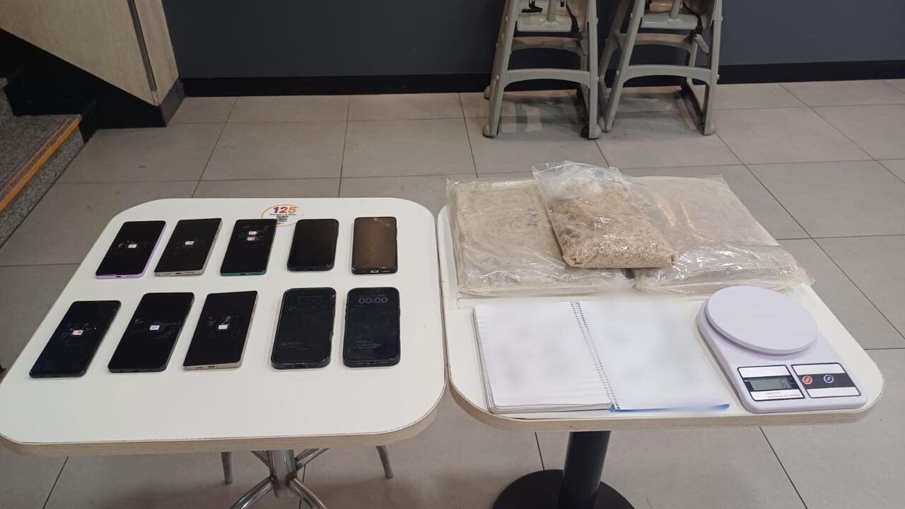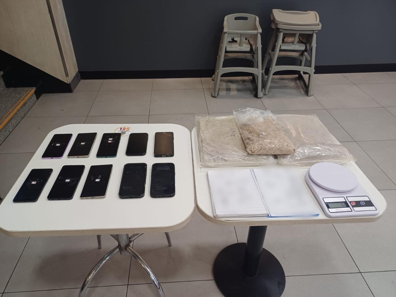 Durante la requisa se encontraron tres bolsas de nylon con aproximadamente 6 kilogramos de droga “Cristal”, una pistola calibre 9 mm con 17 cartuchos, 10 teléfonos celulares y un cuaderno con anotaciones.
