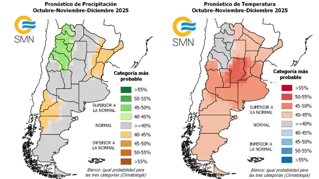 Los mapas con las predicciones dan cuenta de cómo será el período de precipitaciones en todo el país, al igual las temperaturas esperadas para el período octubre-noviembre-diciembre.