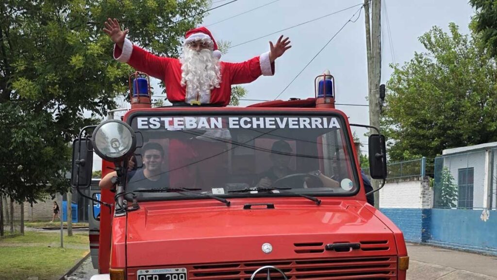 Los Bomberos Voluntarios de Esteban Echeverría acompañaron ayer a Papá Noel, quien recorrió las calles del partido en una caravana.