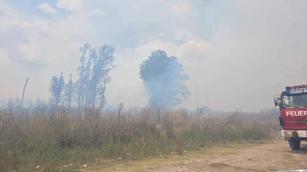 El incendio forestal se registró en el predio lindante a la autopista Presidente Perón. Trabajaron bomberos de distintos distritos.