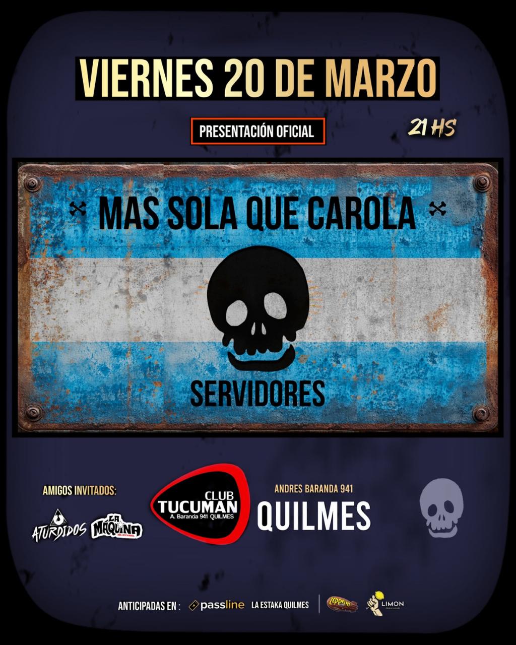 Más Sola Que Carola lanzó Servidores, su nuevo material discográfico, que ya puede escucharse en todas las plataformas digitales. El álbum fue grabado, mezclado y masterizado en Cactus Records (Quilmes) por Federico Eisenbeil.