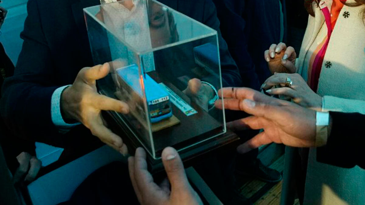Le hicieron llegar una maqueta del 165 a Alberto y Cristina Fernández