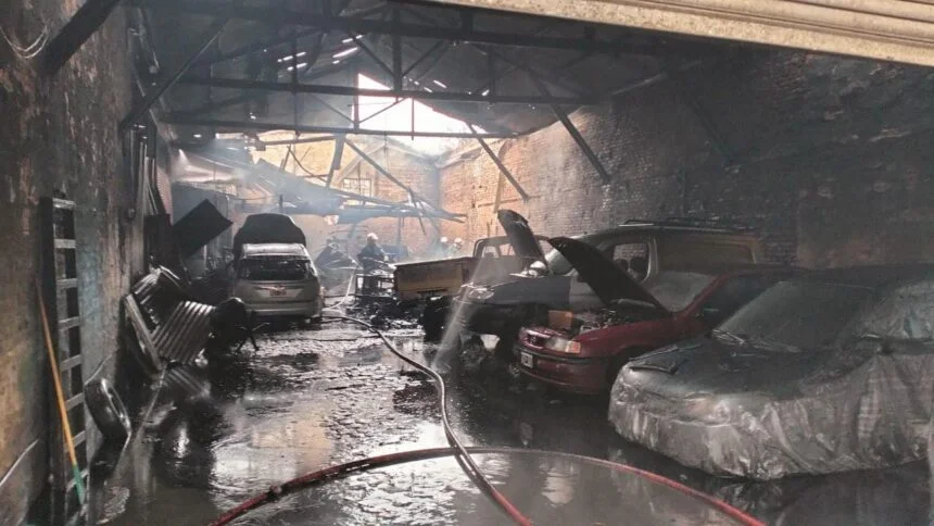 Feroz incendio en un taller mecánico en Lomas de Zamora